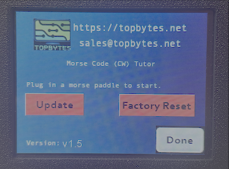 Factory reset will restore all the Morse Trainer settings back to their defaults.